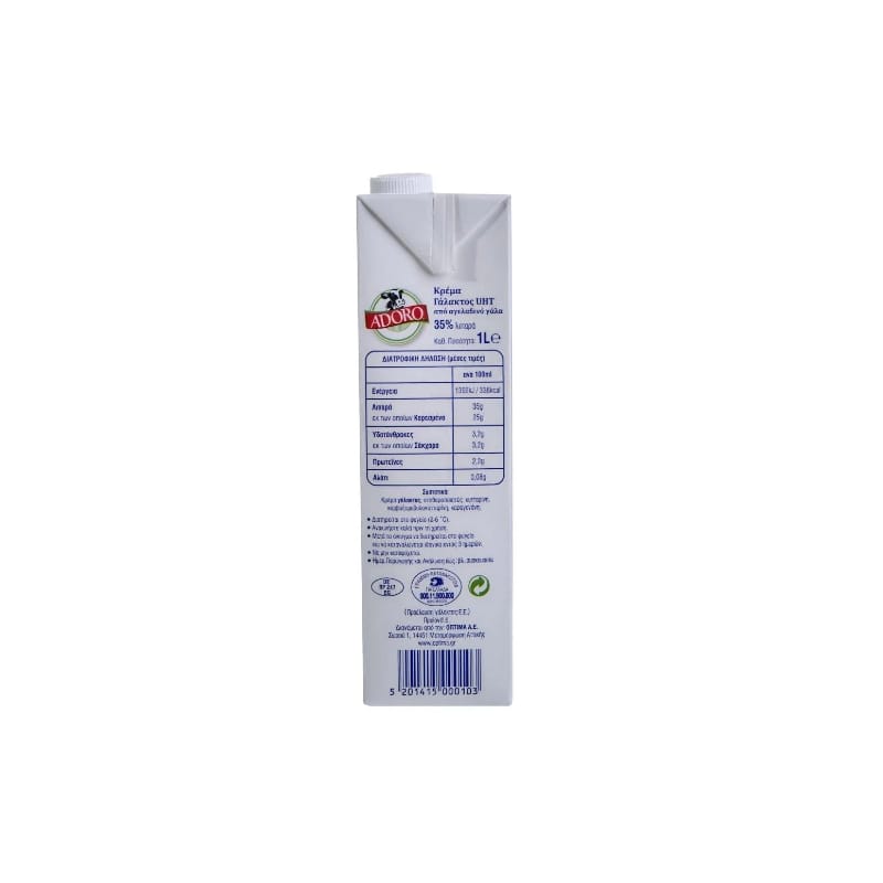 Η Κρέμα Γάλακτος Adoro με 35% λιπαρά και πλούσια υφή, είναι ιδανική για γλυκές και αλμυρές δημιουργίες και χαρίζει μοναδική γεύση.