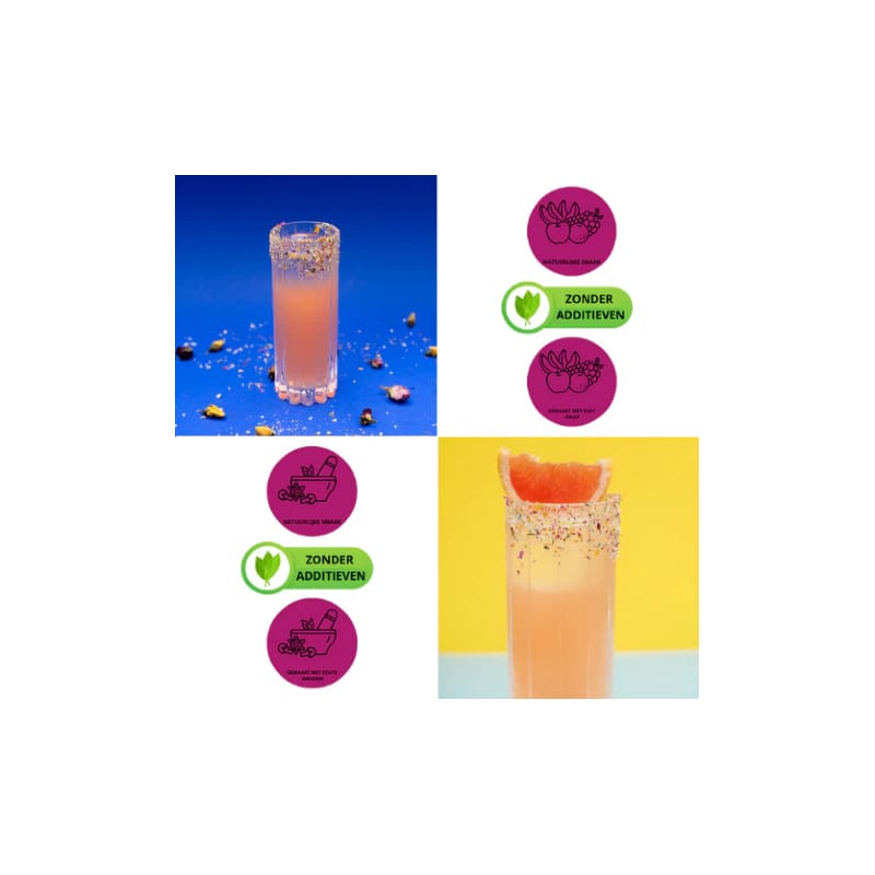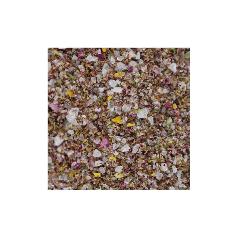 Μέθοδος επεξεργασίας: Κρύσταλλοι αλατιού µε µικρά κοµµάτια άνθους τριαντάφυλλου σε δύο αποχρώσεις και σκόνη αποξηραµένου λεµονιού.
