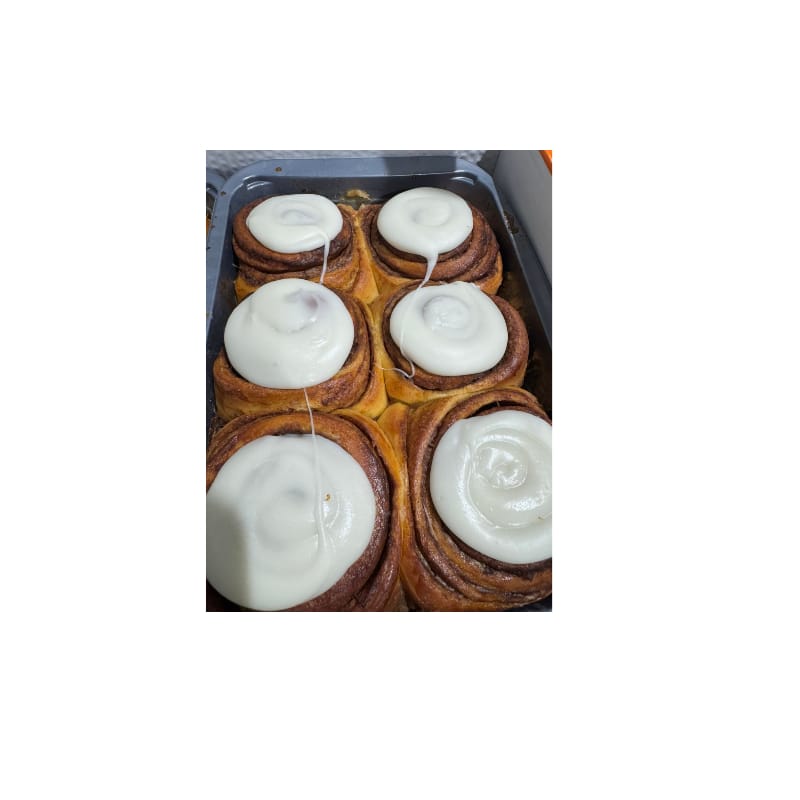 Αφράτο ρολό κανέλας με πλούσιο άρωμα και λαχταριστό, βελούδινο topping που λιώνει απαλά από πάνω.